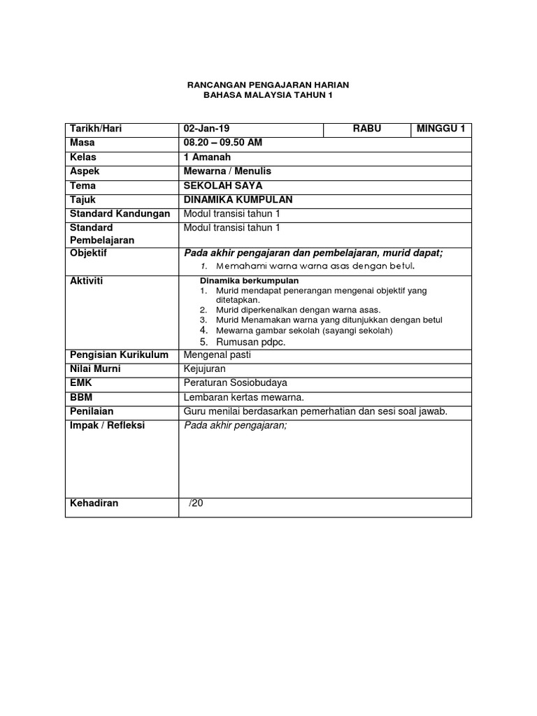 Rancangan Pengajaran Harian Dunia Seni Visual Tahun 3 Pdf